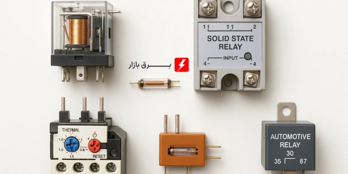 - رله (Relay): رله یک کلید الکترومکانیکی یا حالتجامد است که با جریان کوچک مدار کنترل، جریان مدار قدرت را سوئیچ میکند. معمولاً جریانهای پایین تا متوسط را کنترل میکند و در مدارهای صنعتی، خودرو و تجهیزات الکترونیکی کاربرد دارد. رله برای محافظت و کنترل مدارهای کم تا متوسط مناسب است.