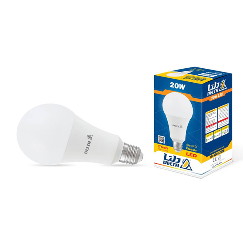 لامپ ال ای دی 20 وات مدل کلاسیک برند دلتا پایه E27 رنگ مهتابی