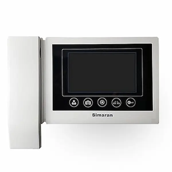 مانیتور 43TK سیماران مجهز به نمایشگر 4.3 اینچی از نوع TFT‑LCD (یا LCD‑TFT) است که تصویر رنگی و قابل قبولی از پنل درب ارائه میدهد. این دستگاه معمولاً دارای کلیدهای لمسی (Touch Key) بوده و طراحی ساده و مینیمالی دارد. 43TK بر اساس مدل دقیق میتواند با یا بدون حافظه داخلی باشد: برخی نسخهها فاقد حافظه ضبط بوده و برخی (مثلاً 43TKM / 43TKM200) دارای حافظه برای ذخیره عکس یا فیلم هستند.
