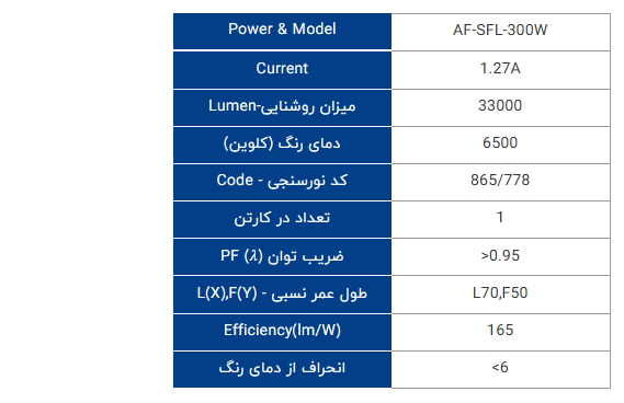ویژگیهای فنی نورافکن 300 وات افراتاب
