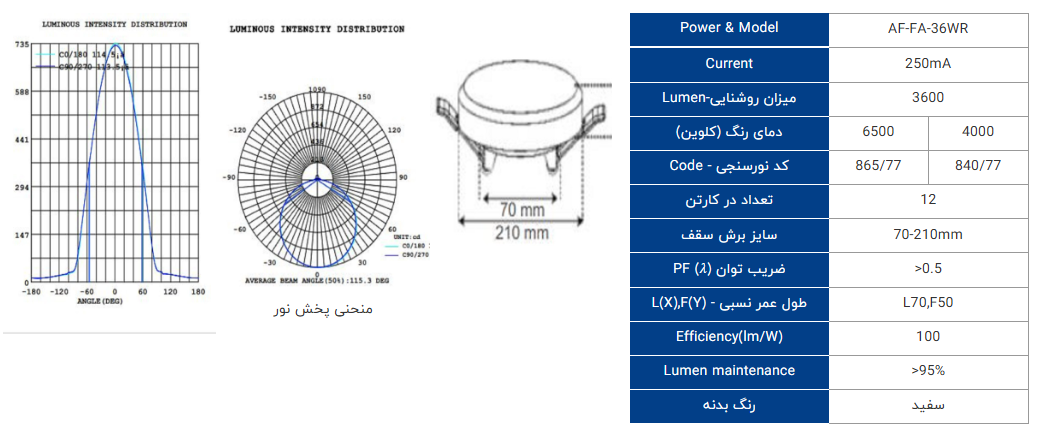 پنل دایره LED فول لایت 36 وات افراتاب در دو رنگ نور کاربردی عرضه میشود: