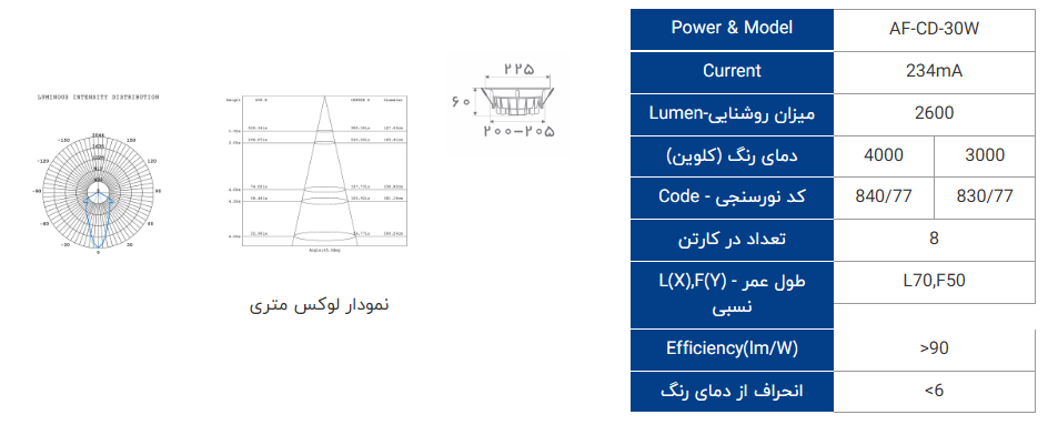 مشخصات فنی چراغ پنلی سقفی 30 وات سری تایتان (Silver)