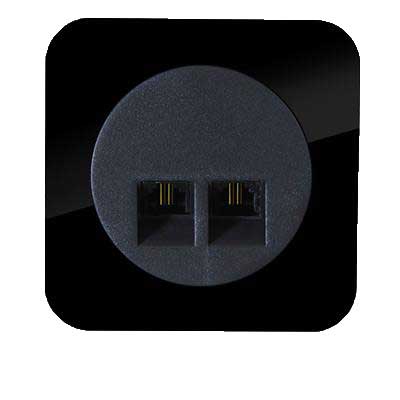 کلید و پریز آدا پلکسی مشکی دلند پلاس /سوکت تلفن دوقلو 4خط(مکانیزم+قاب)