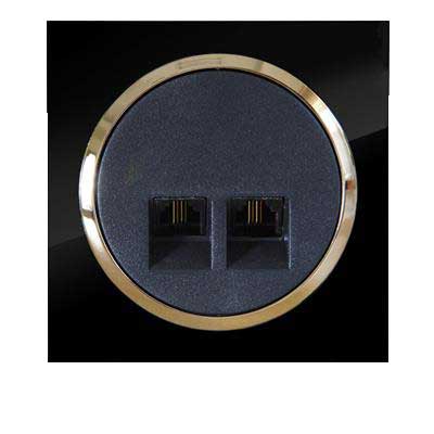 کلید و پریز آوا پلکسی مشکی زه طلایی دلند(مکانیزم+قاب+زه) / سوکت تلفن دوقلو(4خط)