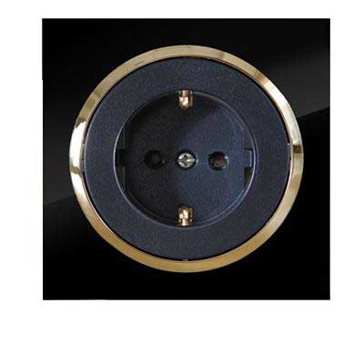 کلید و پریز آوا پلکسی مشکی زه طلایی دلند(مکانیزم+قاب+زه) / پریز برق ارت