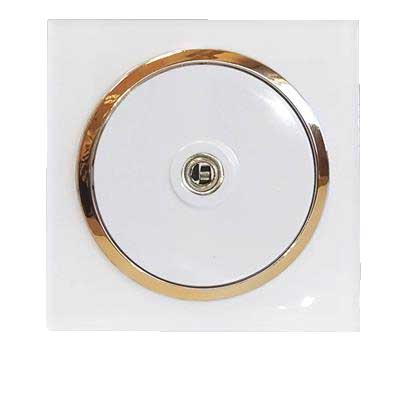 کلید پریز آوا پلکسی سفید زه طلائی / فیش آنتن(مکانیزم +قاب+زه)